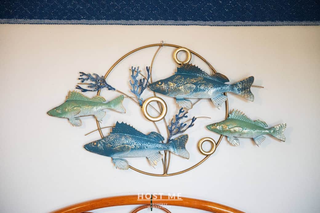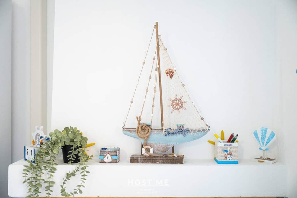 Per gli ospiti o i bambini, si trova un comodo divano letto nel salotto che ottimizza lo spazio senza sacrificare lo stile o il comfort.